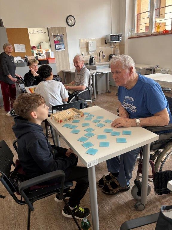 Další setkání s klienty DD Bystřany a žáků 6. B se uskutečnilo 24. 3. 2026. Během návštěvy si chlapci a děvčata společně s klienty domova zahráli různé společenské hry a strávili příjemné odpoledne.