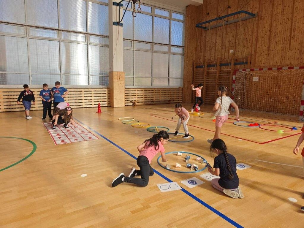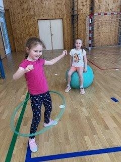 Vše probíhalo formou her a cvičení zvířátek. Pro žáky byla připravena tři stanoviště, u kterých procvičovali rovnováhu, dále cvičili s míčem na posilování zádového svalstva a také rychlé změny v souvislosti reakce na barvu. Na závěr hodiny proběhlo vydýchání, shrnutí hodiny a rozloučení se s paní trenérkou.